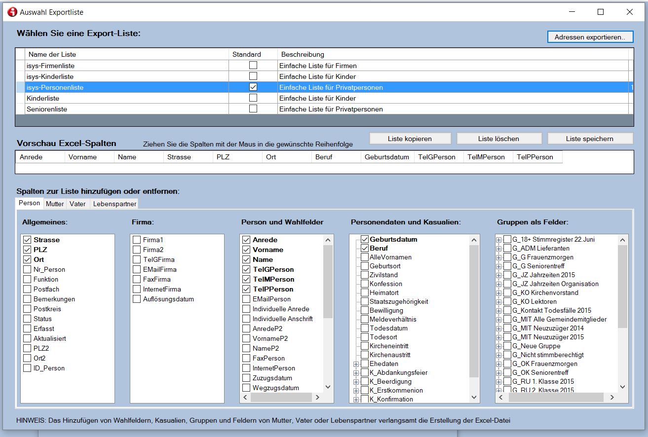 - schnelles Erstellen von Adresslisten nach beliebig vielen Kriterien (z.B. Jubilarenliste)