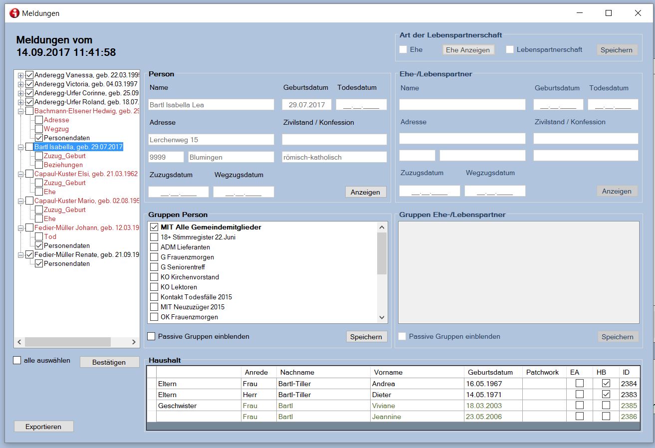 - unkompliziertes Erstellen von Taufurkunde, Firmschein, Haushalts- und Familiendatenblatt etc.