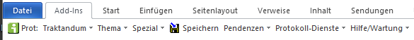 ProtMenü Menue Protokollmanager  Protokoll schreiben isys Informatik isisokolle werden mit isys-Protokollmanager mit MS Word verfasst. Alle Word-Funktionen stehen nach wie vor zur Verfügung. Mit der zusätzlichen Menüzeile, wird Word durch isys-Protokollmanager ergänzt.